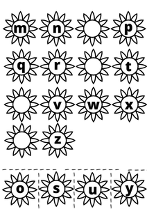 Recite the alphabet sequence with your child and pause when you reach the blank to let your child fill in the missing blank