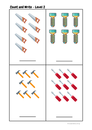 After your child has finished counting, get your child to write down the number on the line provided
